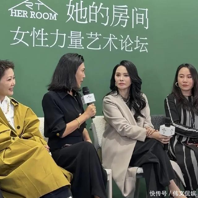 57岁伊能静亮相女性论坛,脖纹明显气场依旧,一身自信活成焦点